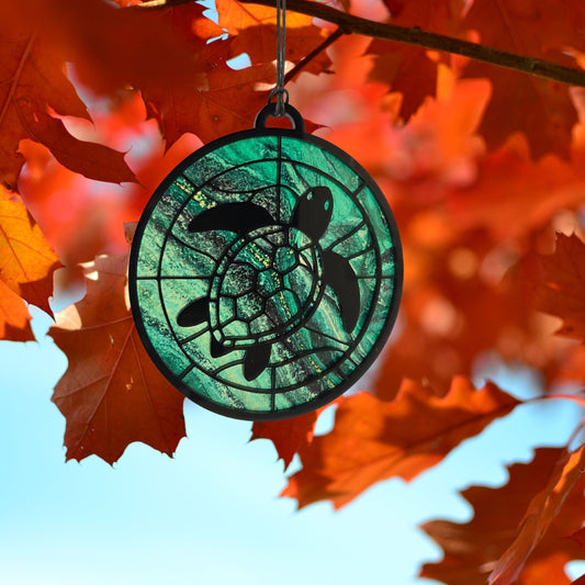 Turtle Suncatcher, Small Round 2 Layer Acrylic and Flex Window Decoration