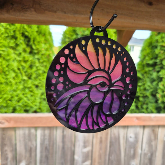 Rooster Suncatcher, Small Round 2 Layer Acrylic and Flex Window Decoration