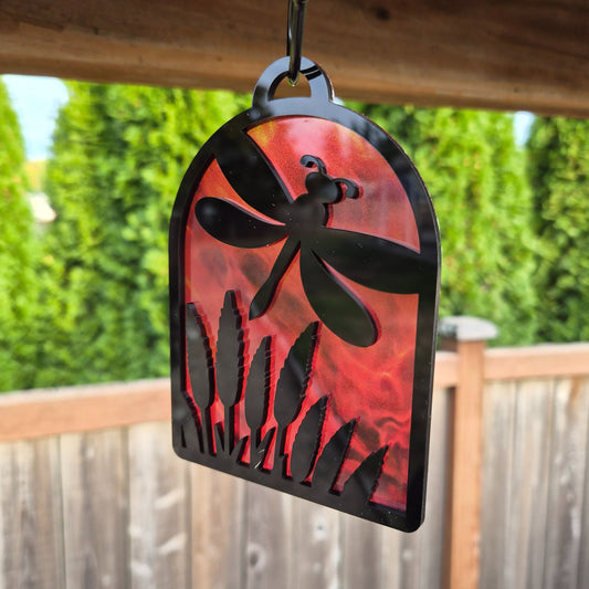 Dragonfly Suncatcher, Small 2 Layer Arched Acrylic and Flex Window Decoration