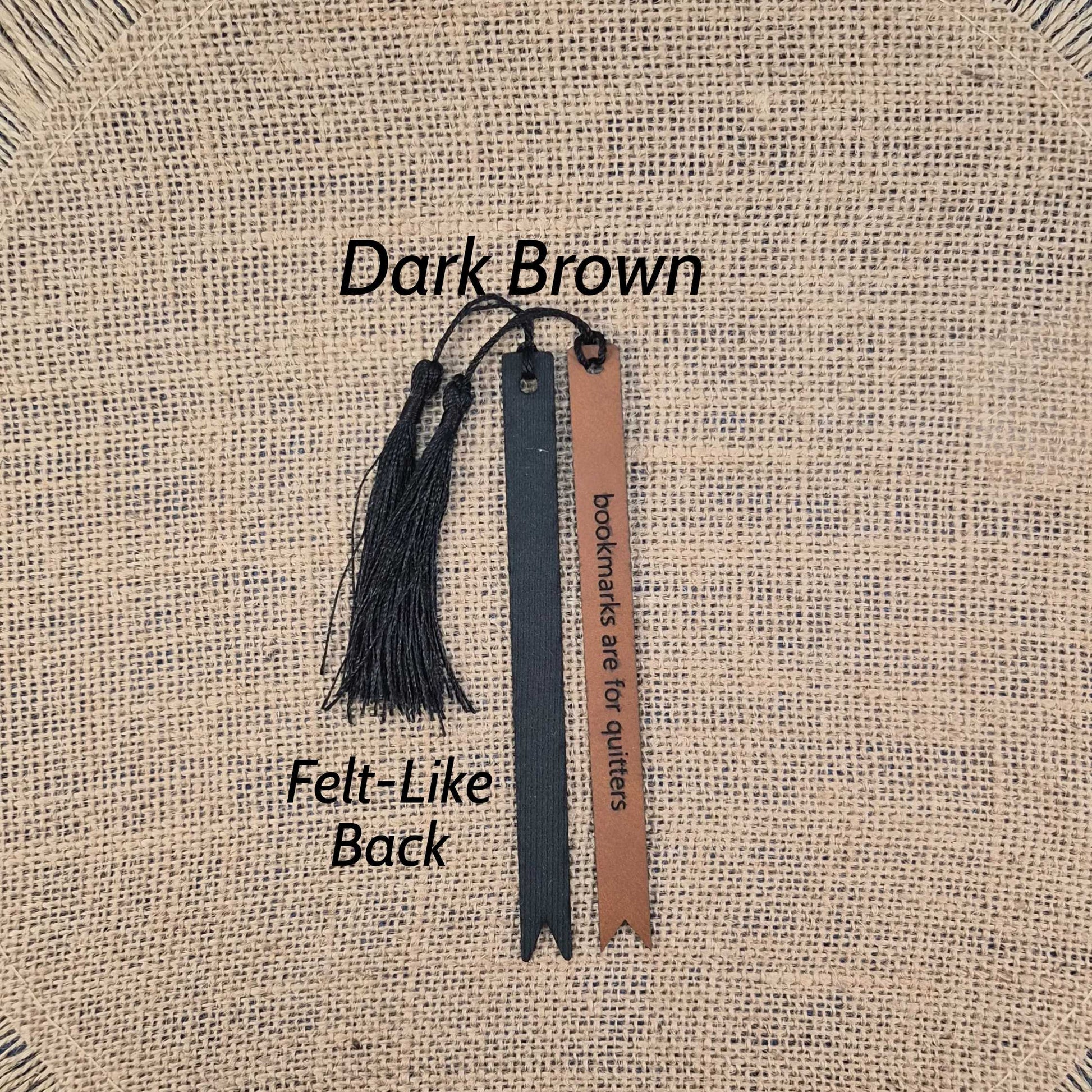 Each bookmark is made from high-quality faux leather and laser-cut and engraved for crisp, precise detail.