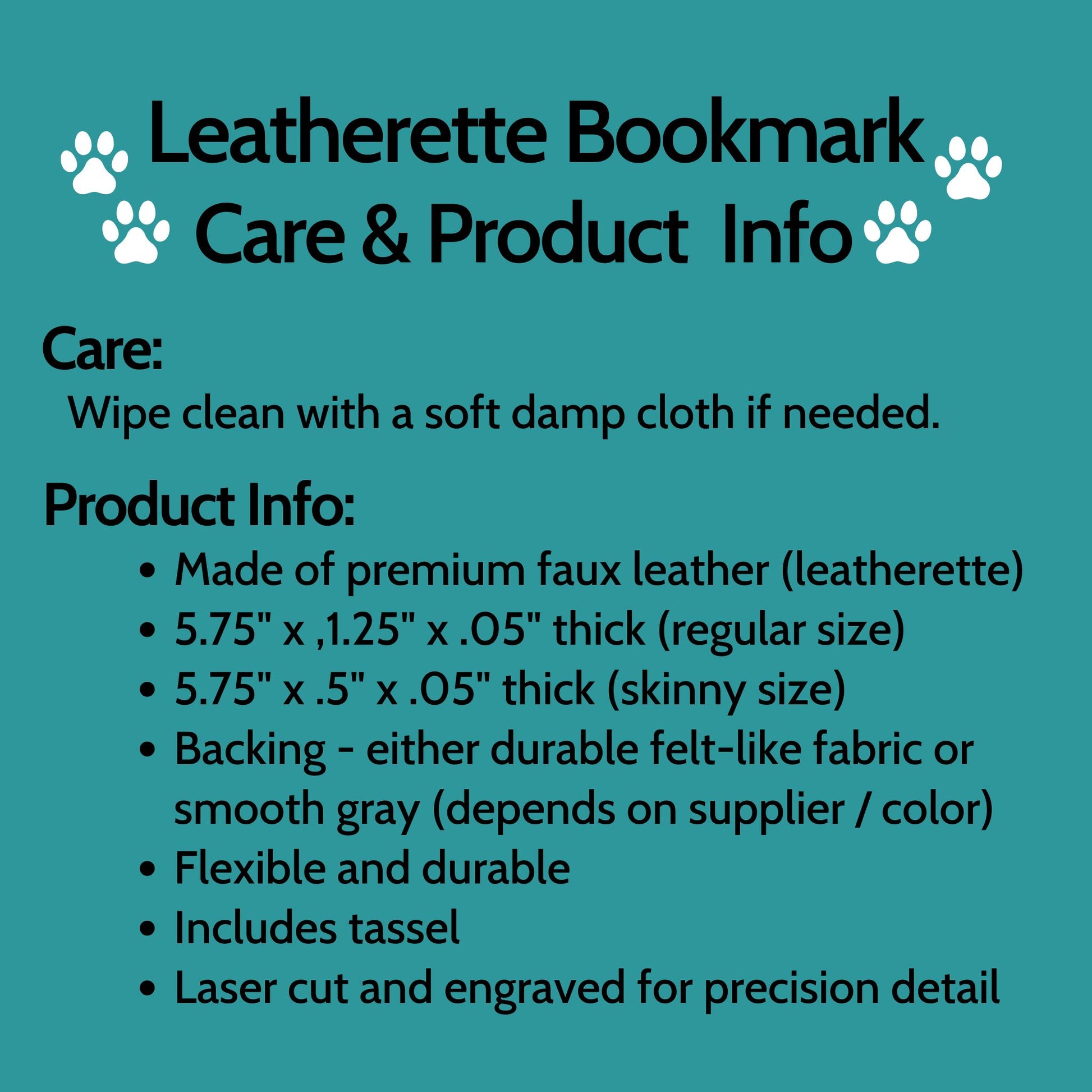 Each bookmark is made from high-quality faux leather and laser-cut and engraved for crisp, precise detail.