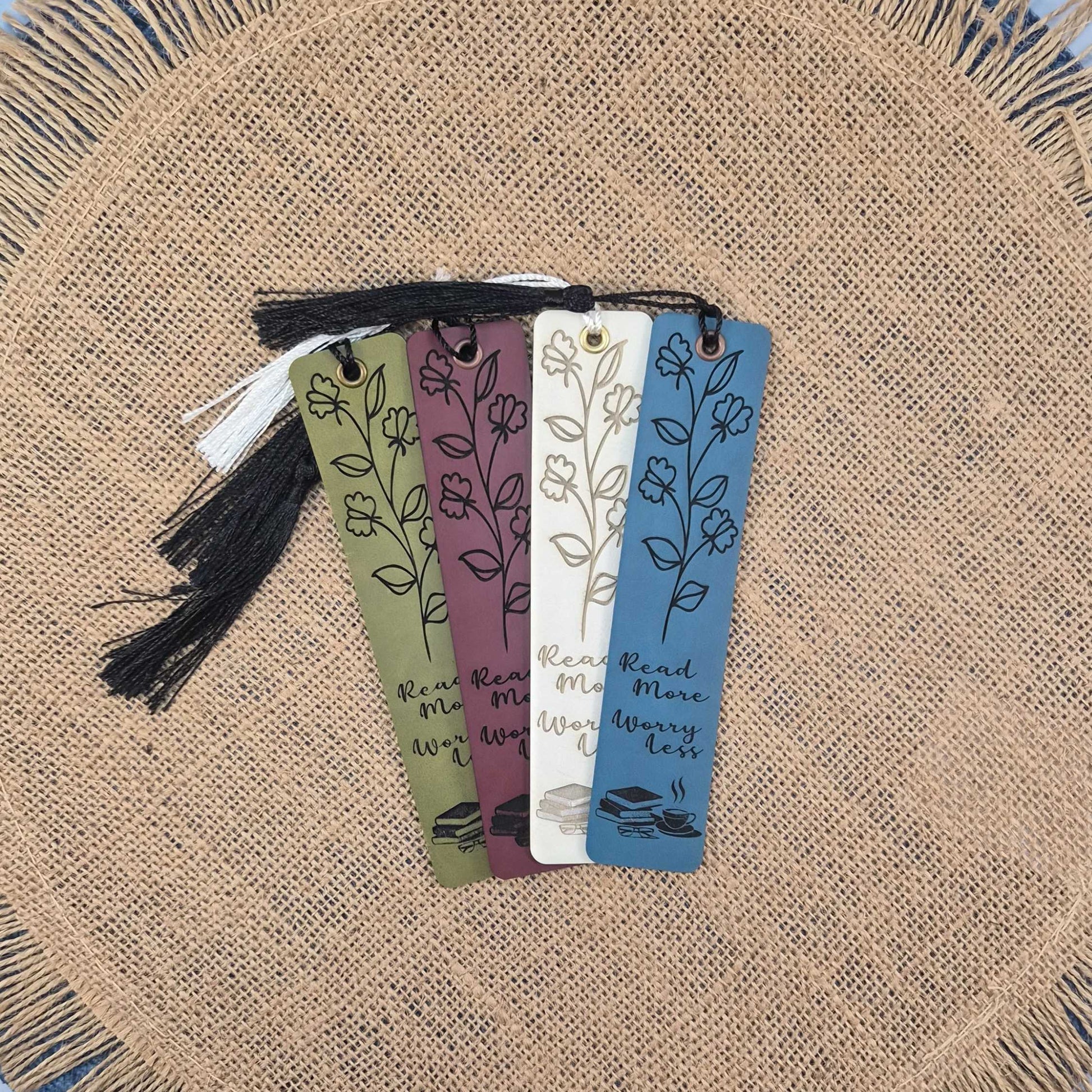Read More Worry Less Floral Leatherette Bookmark With Tassel