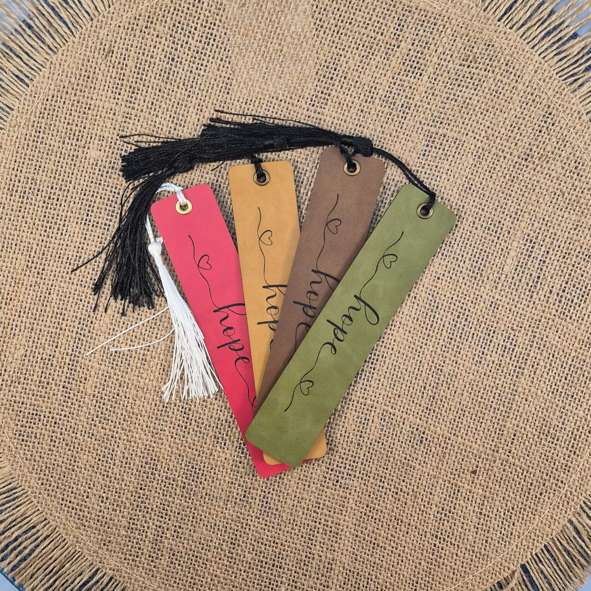 Each bookmark is made from high-quality faux leather and laser-cut and engraved for crisp, precise detail.